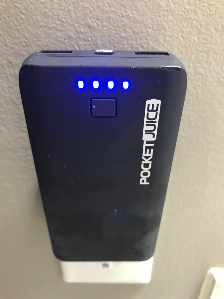 In my under the seat carryon, I pack headphones, a charger (car charger for rental cars) a book or magazine, my ziplock with toiletries, any medicines you need, a snack and, if checking a bag, a change of underwear and a bathing suit if appropriate. I also try to add a purchased bottle of water once I am through security in case for some reason the in flight service is slow or unable to happen. A hint: for long trips (a neck pillow) or music festivals, I bring a portable charger. I have one that has 2 ports to charge two phones and it plugs in at night into an outlet to recharge. It has been so helpful! Best purchase ever! See photo below.